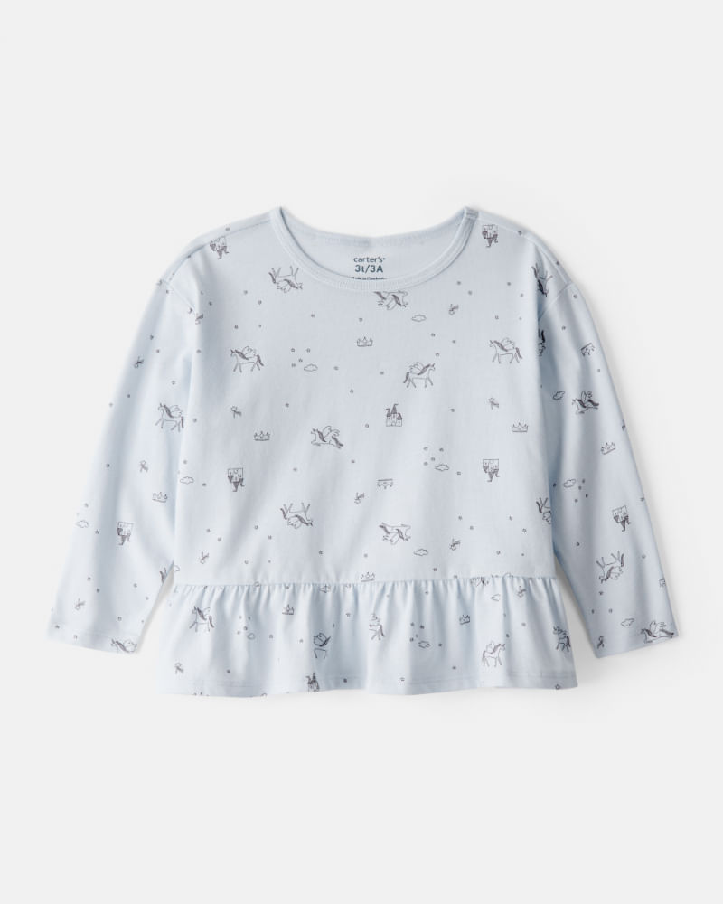 Blusa Con Estampado De Unicornios Y Manga Larga En Azul 2T644510|Carter's