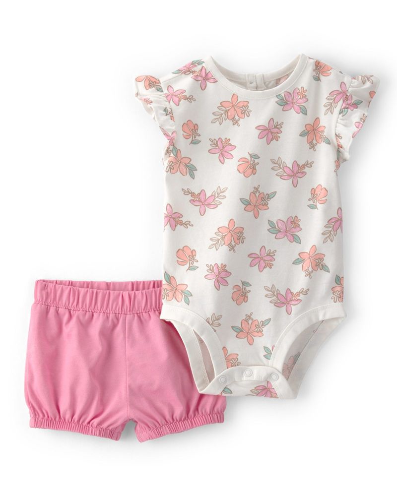 Conjunto De 2 Piezas Con Pañalero Y Short Floral Rosa 1U564210|Carter's