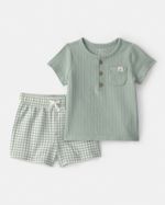 Conjunto De 2 Piezas De Blusa Y Short De Cuadros Verdes 1U604810|Carter's