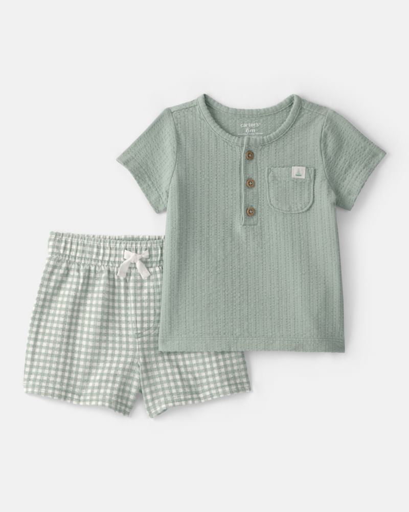 BEBÉ NIÑOConjuntosConjunto De 2 Piezas De Blusa Y Short De Cuadros Verdes Carter's