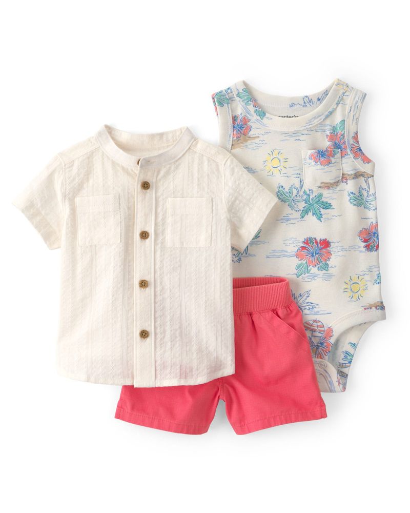BEBÉ NIÑOConjuntosConjunto De 3 Piezas Con Pañalero, Playera Y Short Tropical Carter's