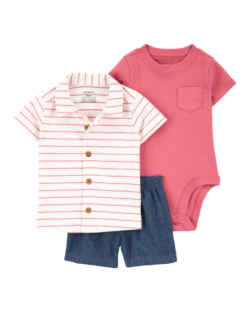 Conjunto De 3 Prendas A Rayas Con Short Carter's 3M