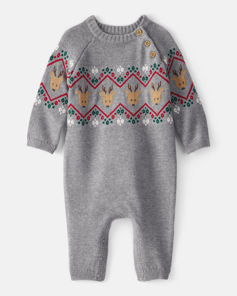 Mameluco De Fair Isle De Manga Larga En Gris 1T570810|Carter's