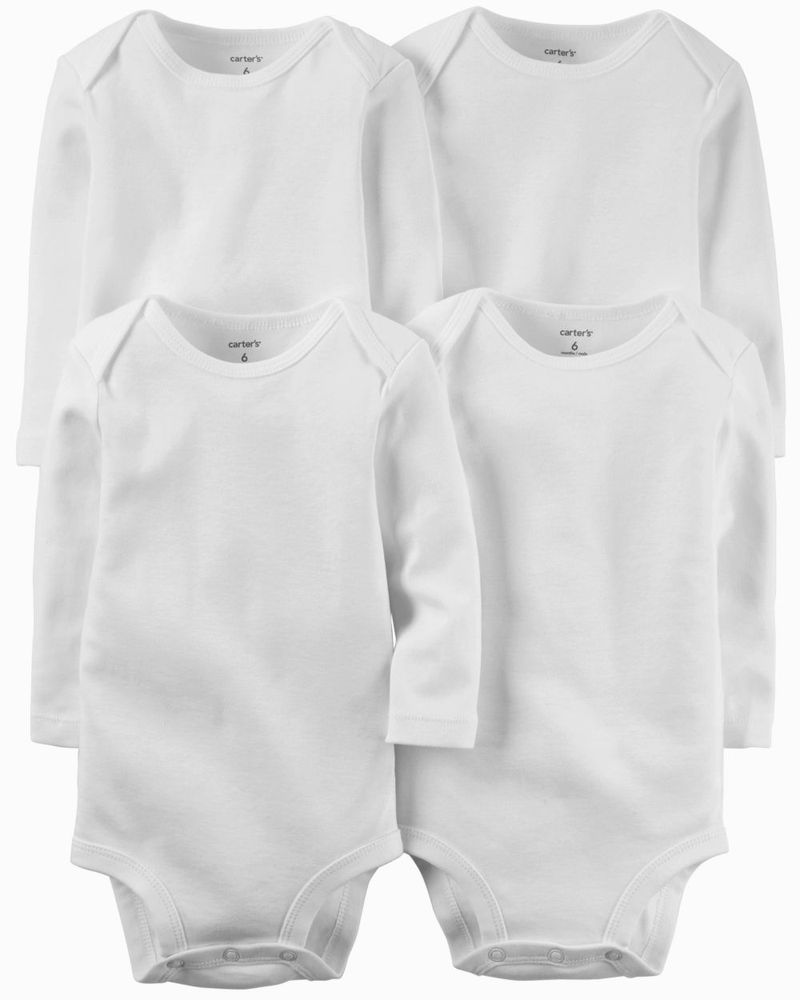 Paquete De 4 Pañaleros De Manga Larga Blanco 1L930610|Carter's