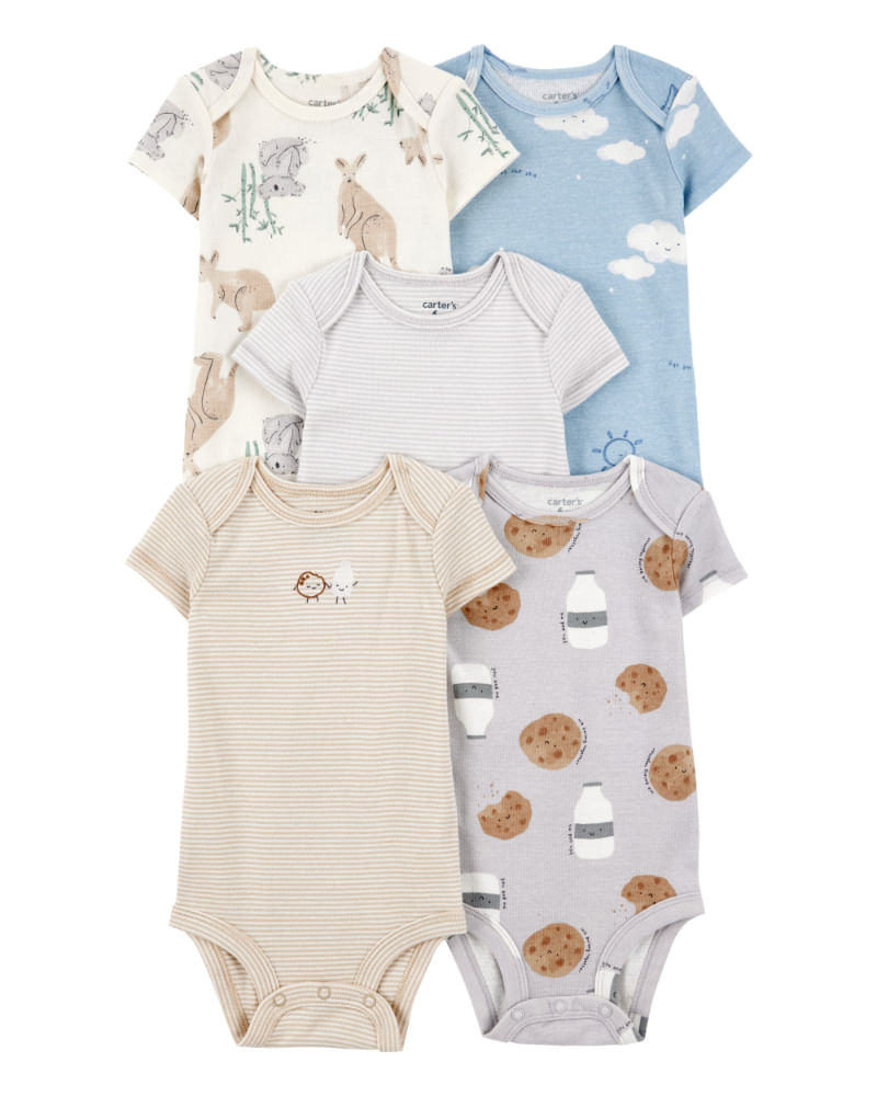 Paquete de 5 pañaleros de manga corta de nubes y canguros Carter's 24M