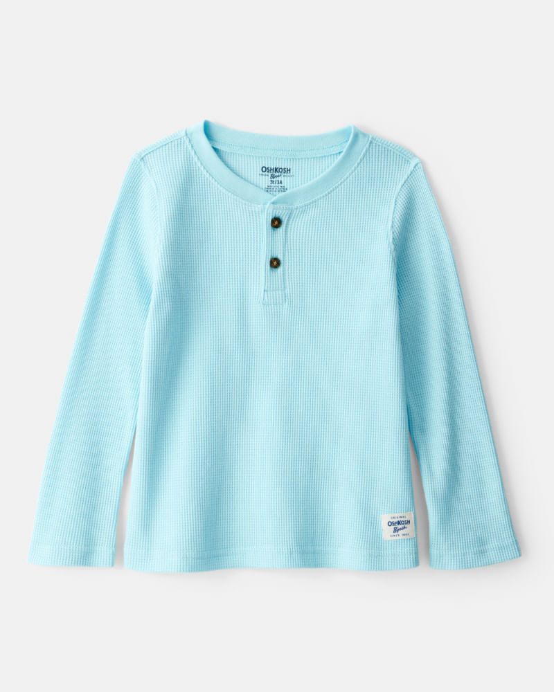PREESCOLAR NIÑOPlayeras y CamisasPlayera Con Cuello Tipo Henley De Manga Larga En Azul Oshkosh B'Gosh