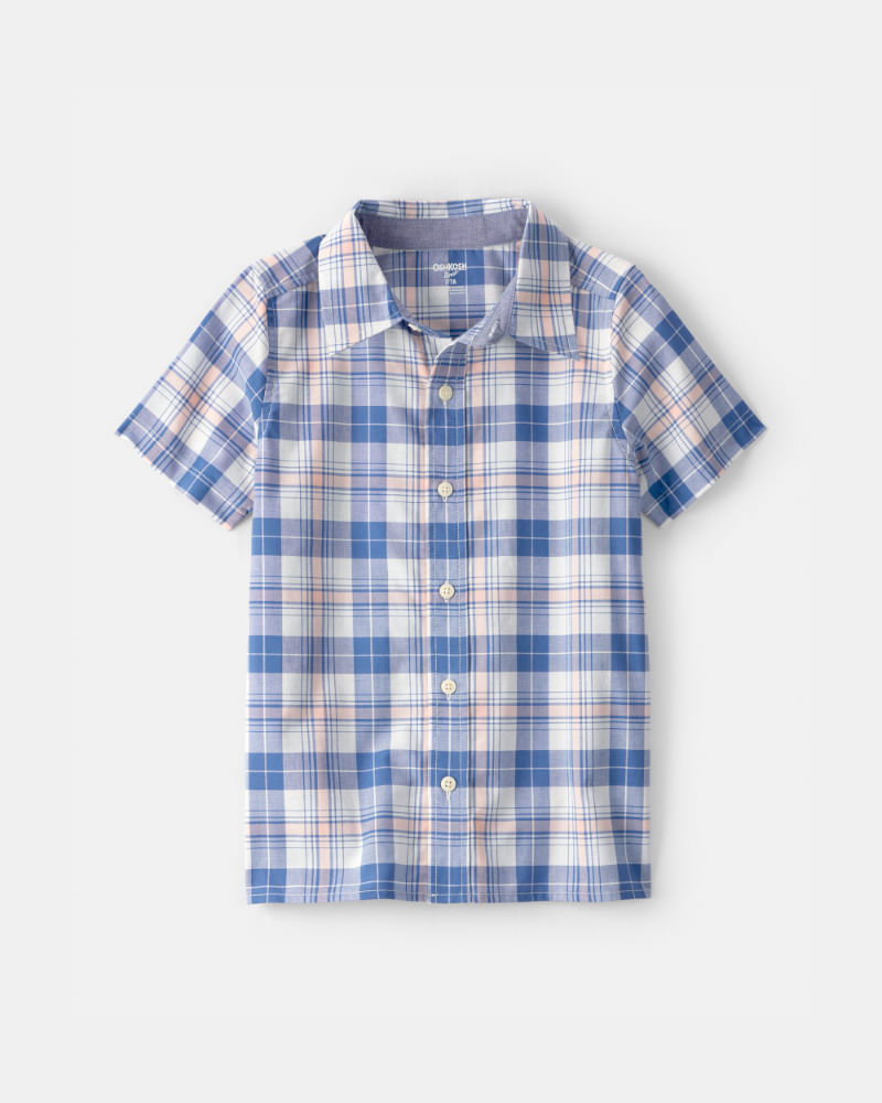 Playera De Botones De Manga Corta A Cuadros Azul Oshkosh B'Gosh 6A